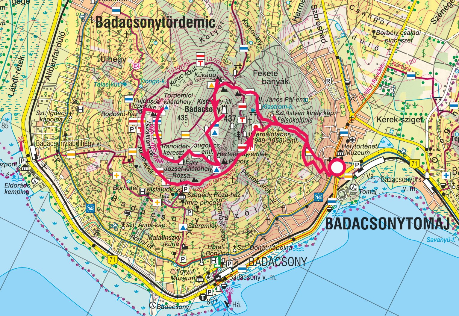 Badacsonytomaji körút útvonala
