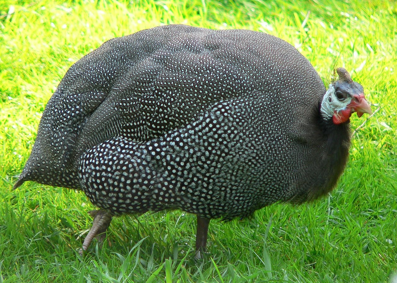Magyarországon a gyöngytyúk a 13. században már jelen volt, elsősorban a kolostorok és a főúri vadaskertek tartották díszmadárként. A paraszti gazdaságokban a 19. század végén terjedt el, elsősorban a Duna-Tisza közén és a Tiszántúlon. A gyöngytyúk feltűnő, szép alkatú és színű baromfi. Az apró fejükön lévő sisak a kakasoknál nagyobb méretű. Kétoldali állebenyük fehér, vöröses szélekkel. Tollazatuk általában kékesszürke fehér, apró pöttyökkel. Gyakori a fehér alapszín is, tejfelsárga ezüstfehér pöttyökkel. A tyúkénál finomabb, könnyebb a csontozata.