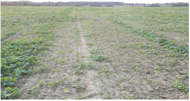 A forgatás nélküli műveléssel ezt a mennyiséget nagyon nehezen tudjuk eltüntetni úgy, hogy ez a későbbiekben se kelési gondokat, se káros pentozán hatást, se pedig gyomosodási problémákat ne okozna! Végső soron pedig a vetőágy egyenetlenségét, a talaj vízháztartásának hiányosságait, mindezek eredményeként pedig a repce kelésének egyenetlenségét is eredményezheti, amit azt az 1. kép is mutatja.